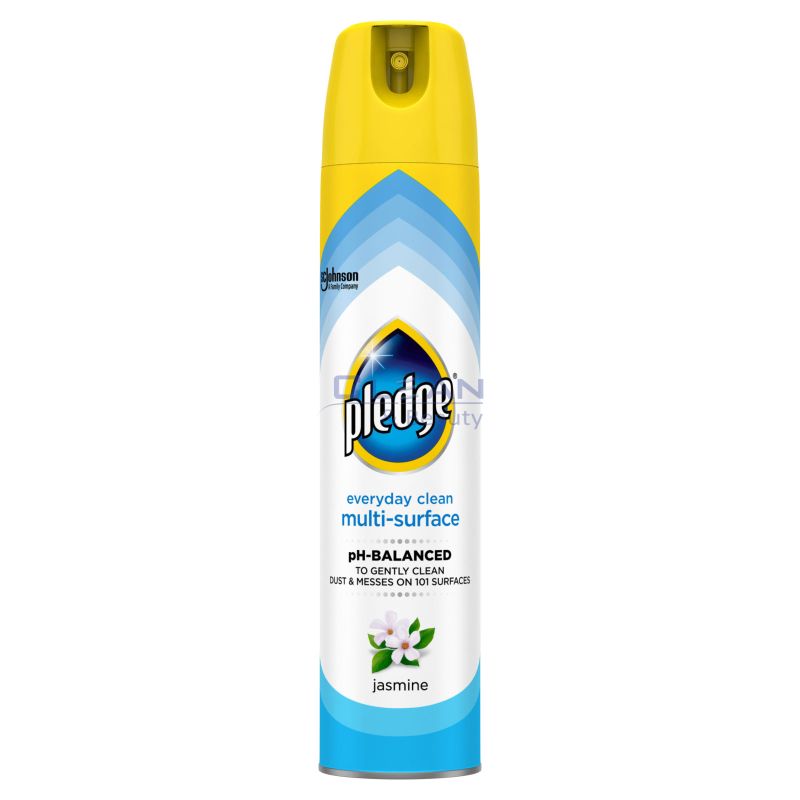Pledge Everyday Multi-Surface Cleaning Aerosol Jasmine е създаден, за да осигури нежно и ефективно почистване на 101 различни типа повърхности. Благодарение на pH-балансираната си формула, той е безопасен за използване върху дърво, кожа, гранит, неръждаема стомана и много други. Продуктът съдържа 100% натурален пропелант и оставя свеж аромат на жасмин, който придава усещане за чистота и комфорт.