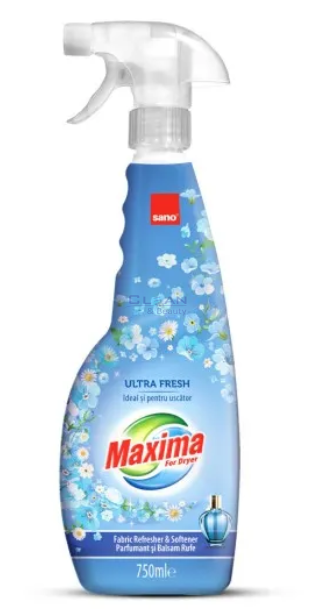 Sano - Maxima Dryer Fresh е суперконцентриран омекотител спрей, който оставя свеж аромат, неутрализира неприятни миризми, премахва статичното електричество и улеснява гладенето. Подходящ за сушилни машини, тапицерии, пердета и килими