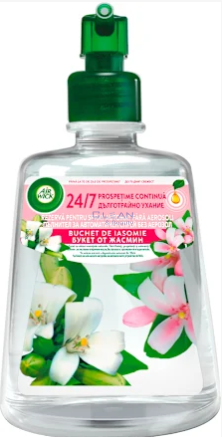 AIRWICK пълнител Жасмин 228 мл е идеалното решение за създаване на уютна и релаксираща атмосфера у дома. Богатият аромат на жасмин носи усещане за свежест, хармония и чистота, като същевременно елиминира нежеланите миризми. Пълнителят е съвместим с всички уреди Airwick Freshmatic и осигурява равномерно освобождаване на аромат за седмици наред. Практичен и лесен за употреба, той е подходящ за всекидневни, спални и офиси.