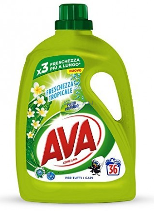 AVA Универсал Freschezza Tropicale 1,8 л е течен перилен препарат за до 36 пранета, създаден за надеждно почистване на бели и цветни тъкани. Концентрираната му формула ефективно премахва петна и замърсявания, като запазва цветовете ярки и придава свеж, тропически аромат. Подходящ е за всички типове перални машини и за пране на ръка, като е ефективен дори при по-ниски температури. Практичен избор за универсална употреба в домакинството.
