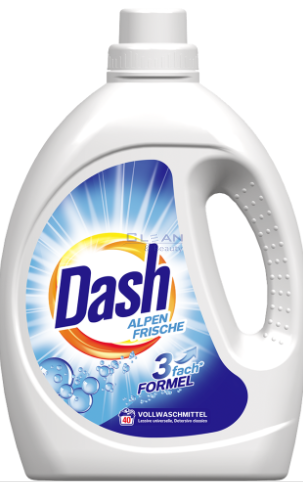 Dash Alpen Frische е разработен за западноевропейския пазар, с иновативна формула, която се справя с петната още при първото пране и възвръща естествената белота на тъканите. Подходящ е за всички видове бели тъкани – от памук и лен до синтетика. Освен че осигурява перфектна хигиена, Dash оставя дрехите с дълготрайна свежест, напомняща на чист въздух в планината.